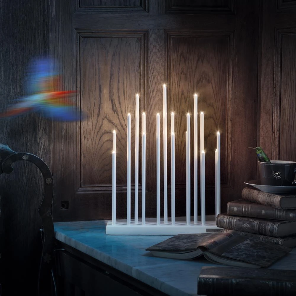 Elflugan a un design inspiré du bougeoir traditionnel. Avec son style moderne et chic, ce chandeier électrique peut relooker n’importe quelle pièce. Il est doté de 19 petites lampes qui projettent une lumière douce et agréable. Posez-le sur une table ou sur un appui de fenêtre, il fera sensation!